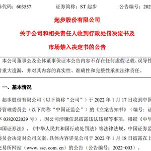 2022年1月17日,ST起步收到证监会《立案告知书》,因公司涉嫌信息披露违法违规等事项,证监会决定对公司立案。