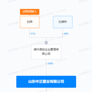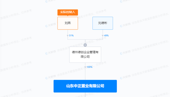 山东中正由德州德创企业管理全资持有,后者则由刘燕、刘德彬分别持股51%、49%。