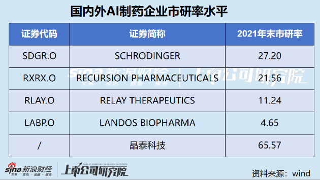 按照2021年末数据测算,晶泰科技的市研率为65.57,远高于同期海外AI制药公司水平。Wind数据显示,4家海外已上市AI制药企业2021年市研率均值为16.16,中位数16.4。叠加新股IPO往往存在较大的溢价空间来看,二级市场投资者通过股票溢价方式获得资本利得同样存在较高风险。