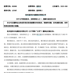 12月6日晚间,家电制冷压缩机配件龙头星帅尔发布公告称,接公司控股股东、实际控制人之一、董事长楼月根家属通知,楼月根于2023年12月5日因病逝世,享年74岁。