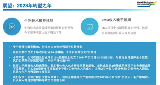 药明生物还提到了对行业的判断,因生物技术融资影响,今年新增项目较去年明显下降,预计行业未来两年或仅有个位数增长。