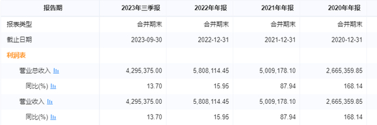 2020年、2021年、2022年,武汉城建的营收分别为266.54亿元、500.92亿元、580.81亿元。2023年前三季度的营收则为429.54亿元。