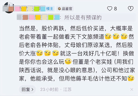 以至于有网友评论说:老俞才是幕后大导演,孙东旭只是个执行导演(陈向东在直播间内涵以前在新东方见多了)。万一演砸了,小孙背锅走人,老俞深情演绎礼贤下士。