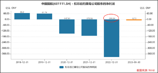 据悉,三年疫情期间,国航一直是三大航中最大的“亏损王”。2020年-2022年国航扣非归母净利为-709.81亿元。其中,2022年是国航亏损最为惨重的一年,当年国航录得净亏损391.84亿元,相当于日亏超1亿元。值得注意的是,今年年初,国航发布公告称,已完成150亿元的定增募资,发行价格为8.95元/股,实际发行的股票数量为16.76亿股。此次定增距离上次定增落地不到一年。因此,国航或踩线再融资新规第二条红线。