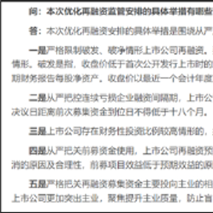 今年11月8日,沪深交易所发布“优化再融资监管安排”的五项具体举措,其中包括: