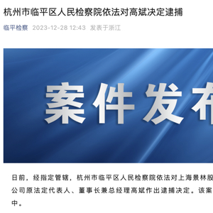 据临平检察最新消息,日前,经指定管辖,杭州市临平区人民检察院依法对上海景林股权投资管理有限公司原法定代表人、董事长兼总经理高斌作出逮捕决定。该案正在进一步办理中。
