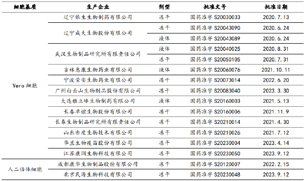 2018年,人用狂犬疫苗头部企业长春长生因狂犬病疫苗存在记录造假,被责令收回GMP(生产质量管理规范)证书,导致供需出现短暂失衡,一度“一苗难求”,叠加狂犬疫苗需求存在刚性且毛利率极高,众多厂商纷纷入局。据国投证券统计,截至2023年末,国内已有14家企业生产的人用狂犬疫苗获批上市,具体名单如下。