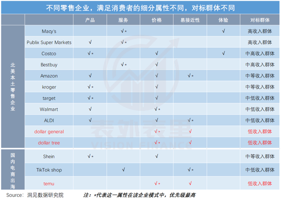 反而是Dollar general(达乐)、Dollar tree(美元树)等dollar店(一元店),在细分目标用户上,与Temu高度重合。