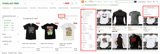 在Temu上买过T恤的消费者,恐怕很难再回到Dollar店的怀抱了。