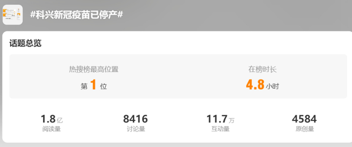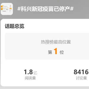 1月10日下午,话题#科兴新冠疫苗已停产#冲上热搜第一,引发不少网友讨论。