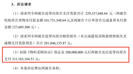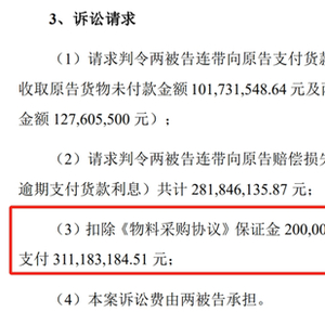 在此基础上,就衍生出了双方针对保证金的争议。肥东国轩认为,既然货款结清了,保证金自然该退给自己;但永太科技将没得到的货款,以及合同里约定好却没执行的采购量损失、赔偿一合计,认定两被告应向自己支付5.11亿元,把保证金扣了还得再支付3.11亿元。