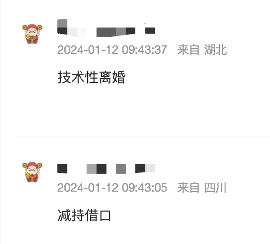 还有投资者担心此次二人是“技术性离婚”“ 减持借口”。