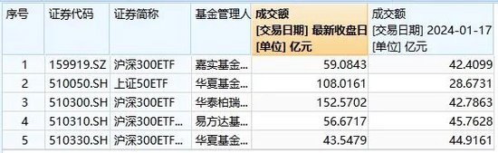 Wind数据显示,截至18日收盘,华泰柏瑞沪深300ETF、嘉实沪深300ETF、易方达沪深300ETF和华夏沪深300ETF成交额分别达到152.57亿、59.08亿、56.67亿、43.55亿元,4只沪深300ETF单日成交额超过310亿元。