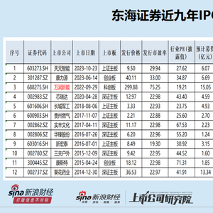 wind显示,东海证券自2006年起,共成功保荐23家企业IPO,其中2010年保荐上市的东光微电和东光微电已经被强制退市。自2014年8月以来,东海证券在九年多时间内保荐的12家IPO项目中,只有1家实现资金超募,占比较低。
