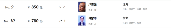 泛海控股实控人卢志强,曾于2015和2016年连续进入《胡润百富榜》前十,身家力压许家印。2015年,卢志强以830亿元财富,成为山东首富。如今,卢志强也已成为被执行人,被限制高消费。