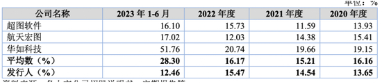 此外,报告期内星图测控综合毛利率分别为66.88%、55.20%、56.92%和54.38%,其中技术开发与服务的毛利率分别为68.40%、56.69%、57.00%、58.29%。与此同时,同行业可比公司毛利率均值分别为56.17%、56.17%、50.23%以及55.26%。