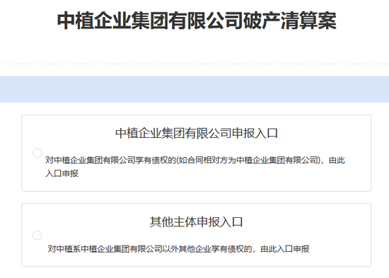 记者查询公告中的线上债权申报链接发现,该次申报区分中植企业集团有限公司申报入口和其他主体申报入口。投资者申报时需填报债权数额、有无财产担保及是否属于连带债权,并提交有关证明材料。提交的债权信息和证据材料经审核后,会通过短信等方式告知审核进展。