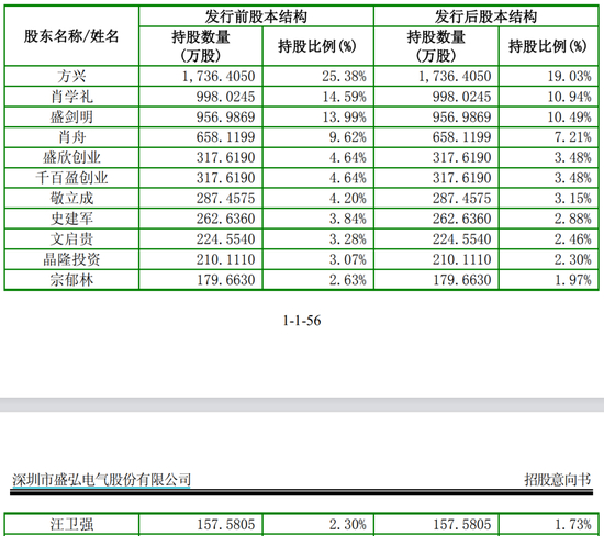 记者在盛弘股份招股书中发现,盛弘股份前身盛弘有限由方兴、汪卫强、李俊杰、雷海军四人共同出资设立。当时汪卫强出资比例为14%。而盛弘股份实现上市后,汪卫强持股157.58万股,占比为1.73%。