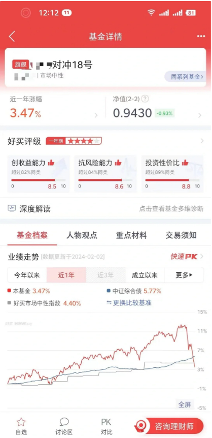 私募排排网列示的业绩和回撤曲线显示,稳博投资成立以来的表现颇为不错。但在2024年1月,稳博投资业绩跳水——整体收益为-12.49%,甚至未能跑赢沪深300。