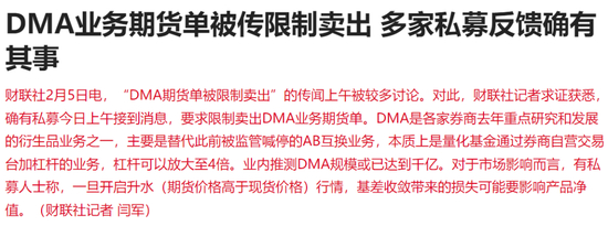 本周,股市经历了一波过山车。就在“触底”的2月5日,财联社报道称,“DMA期货单被限制卖出”的传闻,“确有其事”。