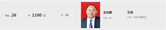 据证券时报,王文银出生于1968年3月,系安徽安庆人。他以铜矿和铜加工业务发家致富,一度拥有千亿资产,有着“世界铜王”之称。近年来,王文银一直是富豪榜上的常客。在2022年胡润百富榜上,王文银以1100亿元的身家排在第26位。也是在2022年,王文银的正威国际集团登上了巅峰。