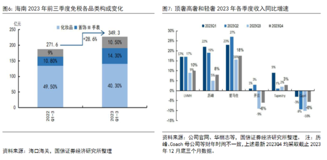 根据海口海关数据,2023年前三季度,香化产品占比已从之前的50%下降至约40%左右,而精品占比还在上升,如中免海棠湾项目自去年四季度引入顶级奢侈品后,精品占比已超过60%;新海港项目顶奢相继开业后,精品占比也预计超过50%。