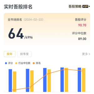 随着2021年煤炭行业的复苏,公司吾股排名显著提高,目前排名为64/4996。
