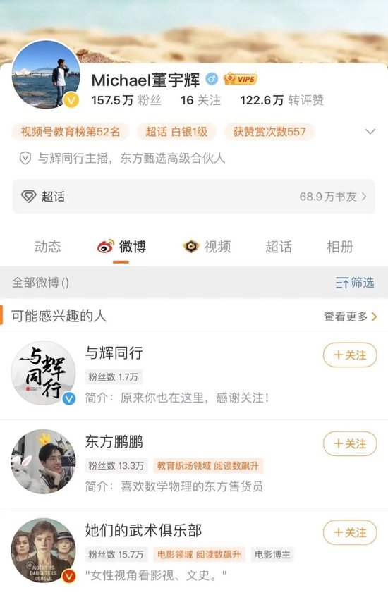 今年以来已经上了79次热搜的董宇辉,受够了一言一行都被无限放大,决定把微博清空,巧合的是,当日东方甄选的市值在盘中一度被干掉了10个亿。有人疑惑,作为顶级带货主播,作为东方甄选的台柱子,他清空微博不和俞敏洪说一声吗?