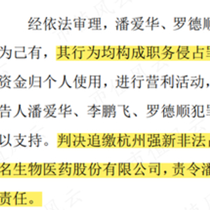 故事讲到这里,矛头已经相当明显,这就是潘爱华与杭州强新的联合做局,利用职务之便,私自将厦门未名34%股权从未名医药转移出来。
