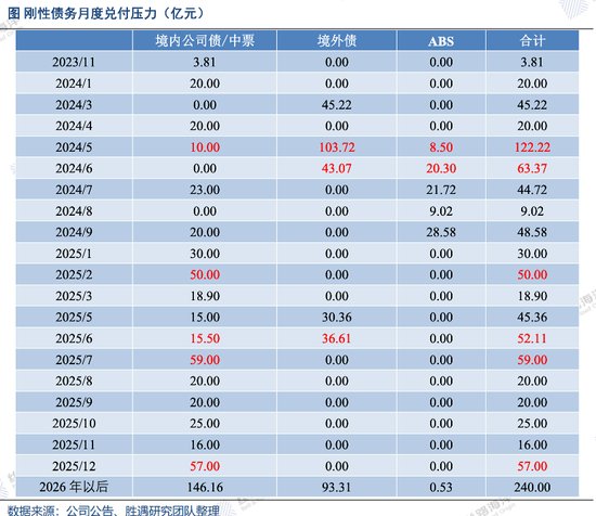 wind数据显示,截至目前,万科的境内债券余额约为640亿元,未来12个月内到期的规模为240.8亿元;境外债余额为32.25亿美元,未来12个月内的到期债务规模为12.3亿美元。