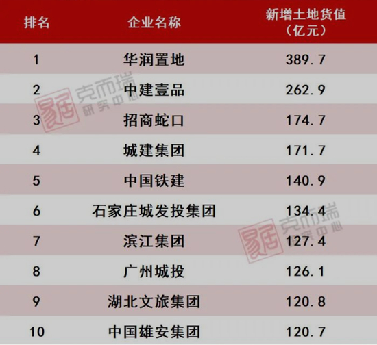 翻开克而瑞拿地排行榜,万科没有进入前十。