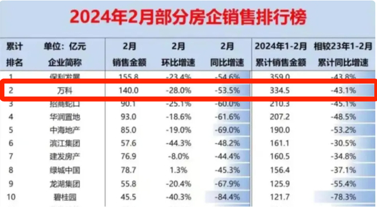 根据中指研究院的统计,2024年前2个月,万科销售额排名地位,一共销售334亿元。