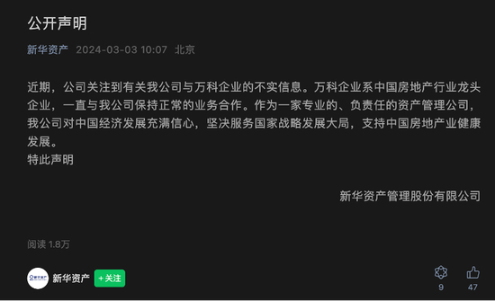 经过两三天的准备,新华资产通过其公众号率先出来澄清: