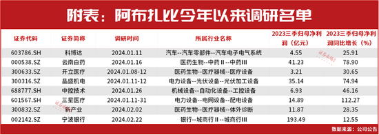 在积极买入A股的同时,“中东富豪”还在不断寻找新的目标,如今年以来,阿布扎比即现身科博达、云南白药和开立医疗等8家公司的机构调研名单(见附表)。