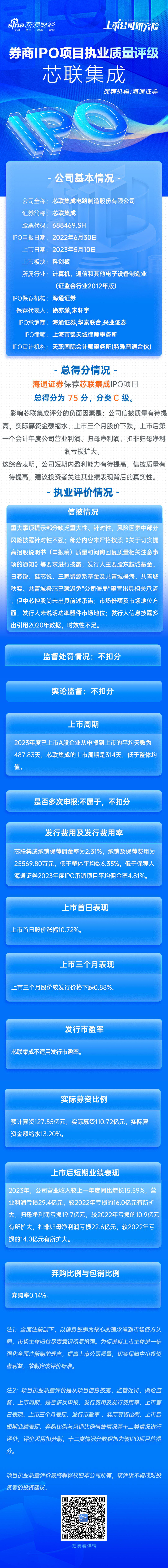 海通证券保荐芯联集成IPO项目质量评级C级 实际募资110亿元 上市首年巨亏22.5亿元