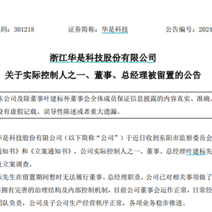 华是科技表示,叶建标在留置期间暂时无法履行董事、总经理职责,公司已对相关事项做了妥善安排。目前公司董事会运作正常,日常经营管理由高管团队负责,公司及子公司生产经营秩序正常,各项业务稳步推进。