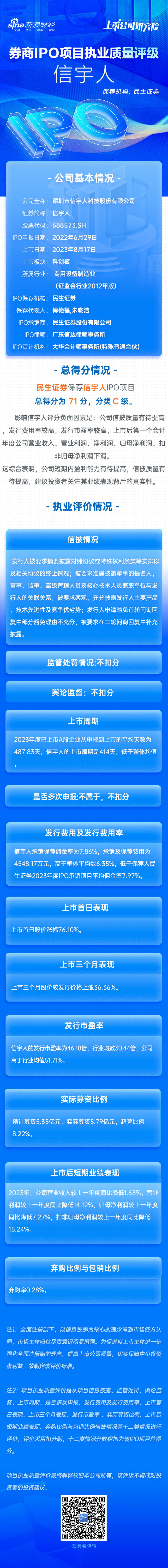 民生证券保荐信宇人IPO项目质量评级C级 上市首年营收净利润双降 信息披露质量有待提高