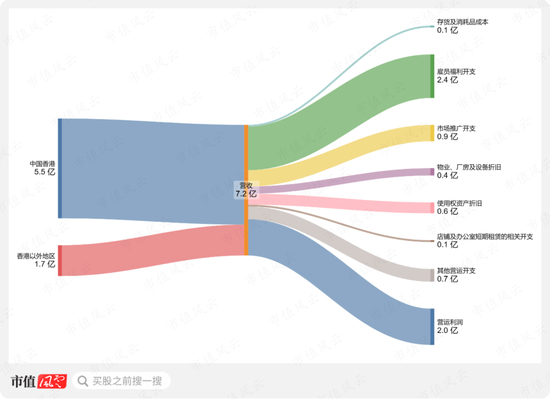 但是公司很快对这些新增的门店盈利能力不满意,开始缩减中国香港以外的门店。相对应地,中国香港以外地区的营收有所下滑。2023财年下滑至3.5亿。2024财年上半年,进一步下滑至1.7亿(去年同期为1.8亿)。