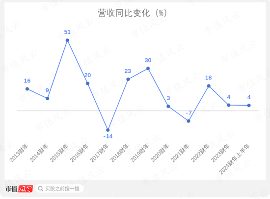 但是除这两个财年,长期看,公司的营收整体呈现增长趋势。然而,值得注意的是,公司营收增速近年有所放缓。2023财年和2024财年上半年的营收同比增长都是4%。
