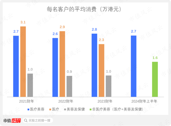在每名客户的平均消费数据方面,医疗美容业务大致在2.6-2.8万港元左右。相对单价最低的美容及保健服务则大致在0.9-1.0万港元左右。
