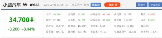 紧接着在3月21日,小鹏汽车被曝出再遭阿里巴巴减持股份,受此影响,小鹏港股股价当天下跌6.54%,收盘价37.9港元/股,市值715.11亿港元。