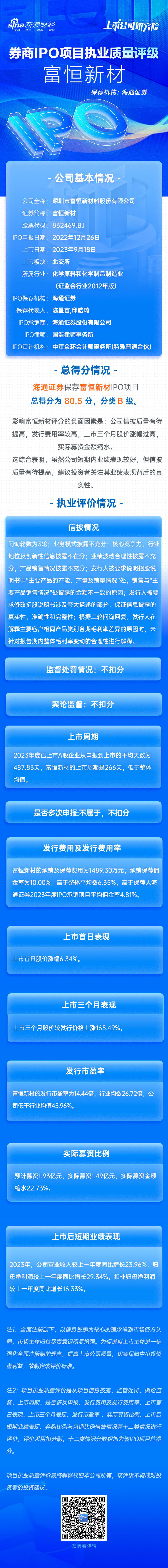 海通证券保荐富恒新材IPO项目质量评级B级 承销保荐佣金率较高