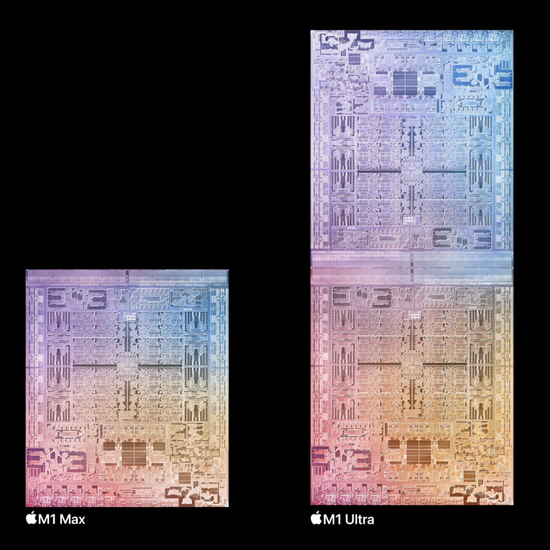 M1 Ultra由两颗一模一样的M1 Max芯片拼接而成