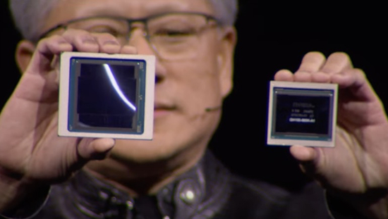 在英伟达的PPT演示里,两颗GPU从边缘“无缝粘合”在一起,面积X2的同时,算力翻倍。