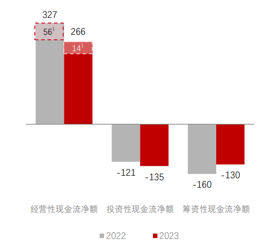 2023年顺丰现金流的表现不尽如人意,三大现金流中,两项亏损,一项同比缩水。