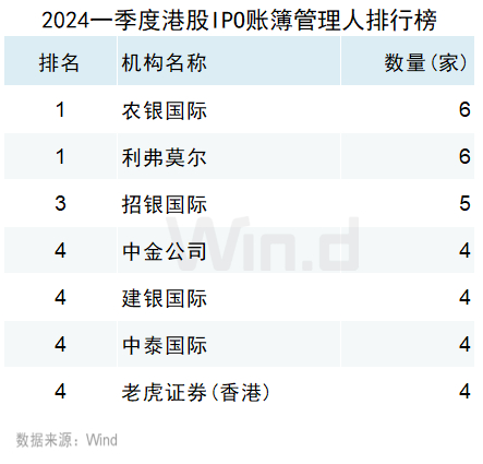 农银国际和利弗莫尔以账簿管理人身份参与了6家IPO,并列第一;招银国际参与了5家IPO,位列第二;中金公司、建银国际、中泰国际和老虎证券(香港)均参与了4家IPO,并列第三。