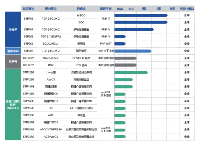 如上图研发管线所示,在资金支持海外研发本已经较为吃紧的情况下,公司仍选择启动一项siRNA的I期临床试验,应用STP705对成人实施腹部整形以减少颏下脂肪,尝试将RNAi治疗产品应用于医学美容治疗,目前相关研究进展仍停留在I期临床。