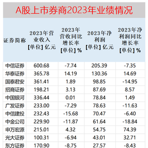 截至4月6日,A股43家纯证券业务上市券商中,已经有23家券商公布了年报。23家券商中,中信证券的营收和净利润都高居榜首;红塔证券的营收最低;海通证券的净利润最低,为-3.11亿元,也是目前唯一一家亏损的上市券商。
