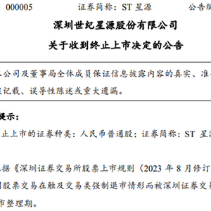 8万股东踩雷!深市“老五股”之一ST星源终止上市!