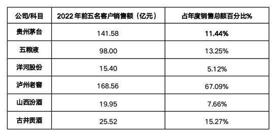 表7.头部白酒公司2022年前五大客户销售额和份额(反映扁平化程度)